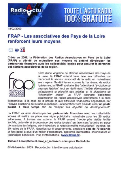 Les associatives des Pays de la Loire renforcent leurs moyens – Radio Actu – 18 février 2009