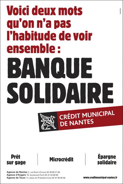 Le Crédit Municipal de Nantes, pour cette première opération de communication confiée à la FRAP, a choisi de diffuser un spot afin de développer sa notoriété en Loire-Atlantique et de présenter sa toute nouvelle identité : la Banque Solidaire.